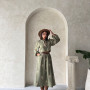 PNT2543 NAKIŞ DETAYLI KETEN UZUN ETEK – AÇIK HAKİ YEŞİL